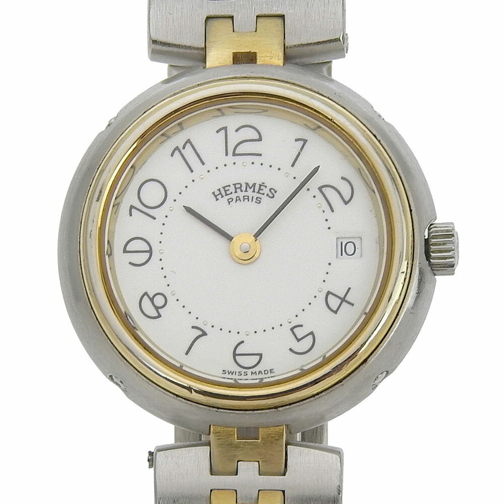 【スーパーセール10%OFF対象】エルメス HERMES プロフィール デイト 腕時計 ステンレススチール×金メッキ クオーツ アナログ表示 白文字盤 Profile date レディース【中古】