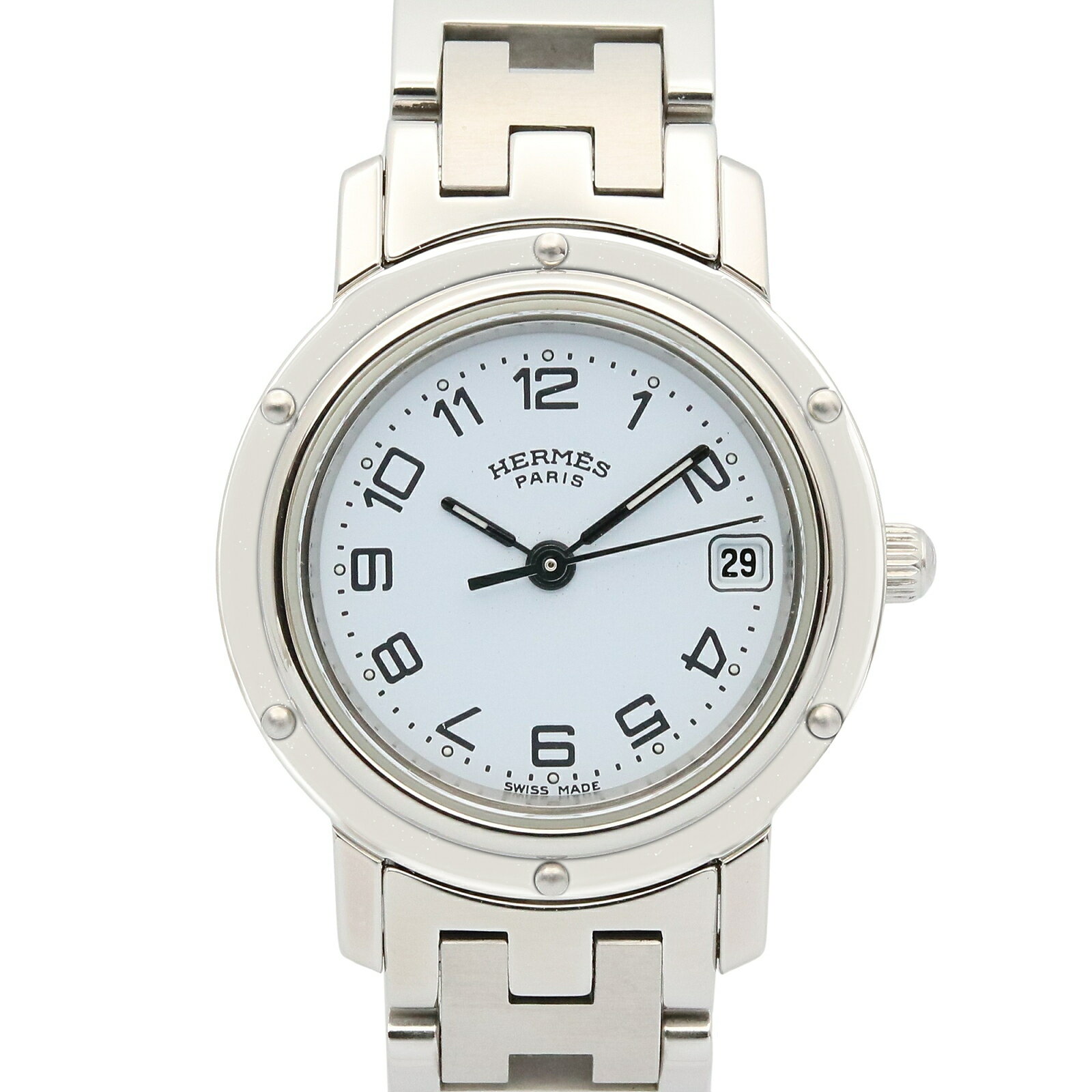 【スーパーセール10%OFF対象】エルメス HERMES クリッパー 腕時計 CL3.410 ステンレススチール クオーツ アナログ表示 ホワイト文字盤 Clipper レディース【中古】