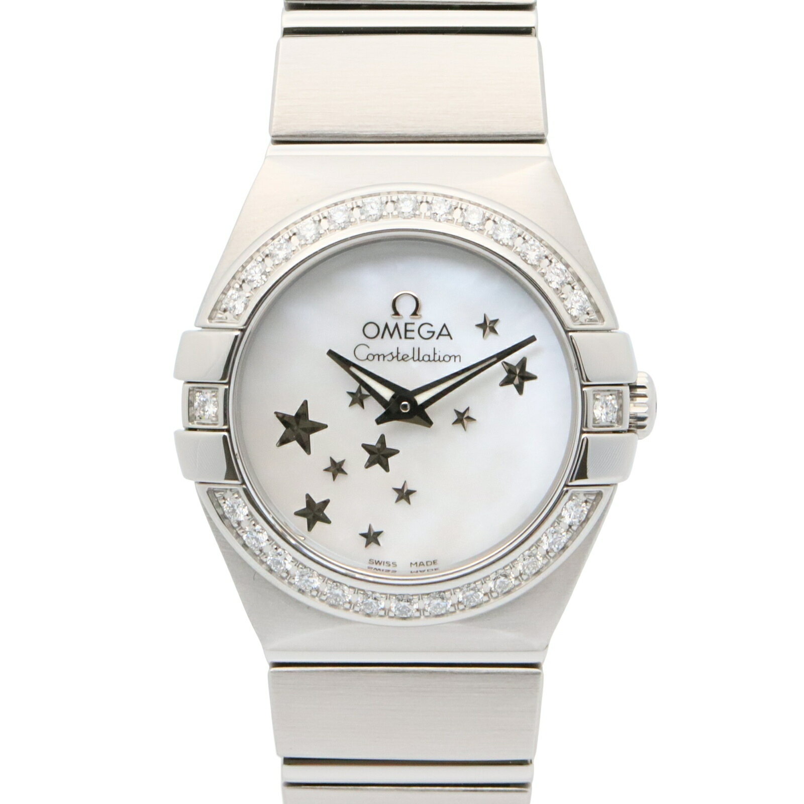 ◆全品5%OFFクーポン対象◆オメガ OMEGA コンステレーション ブラッシュ ダイヤベゼル 腕時計 時計 ステンレススチール ダイヤモンド レディース ホワイト系 ホワイトシェル 123.15.24.60.05.003 【中古】