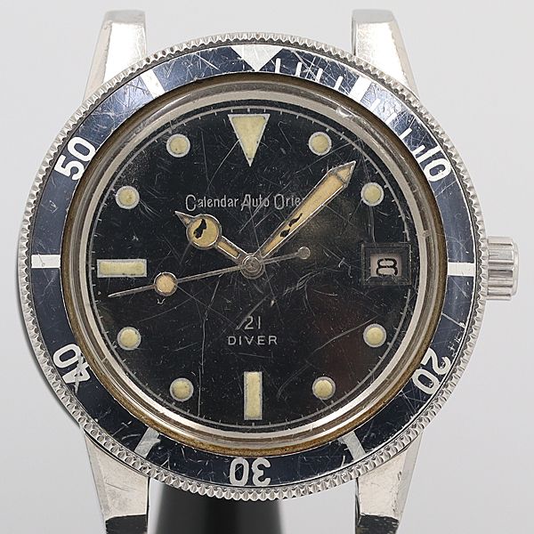 デッドストック級 リコー カレンダーオートオリエント 21石 ダイバー デイト 黒文字盤 AT トップのみ メンズ腕時計 OGH 9090ABC5837000