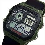 CASIO Standard カシオ スタンダード 世界地図表示ワールドタイム メンズ腕時計 モスグリーンナイロンベルト 海外モデル AE-1200WHB-3B