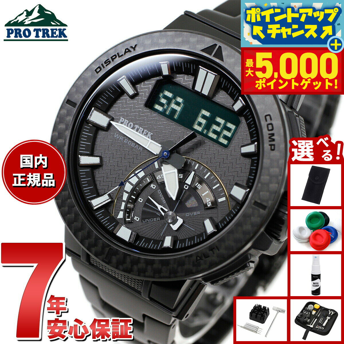 [正規品][送料無料]本格アウトドアギアPRO TREKの20気圧防水を搭載したアングラーラインから、釣りのツールにインスパイアされたカーボンベゼル搭載のPRW-73です。釣りのカーボン...