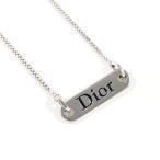 クリスチャンディオール Christian Dior ネックレス ロゴプレート メタル シルバー ヴィンテージ アクセサリー