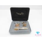 クリスチャン ディオール Christian Dior ネクタイピン カフス セット シルバー ゴールド メッキ ロゴ タイピン【中古】ba3171