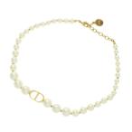 Christian Dior クリスチャンディオール CDロゴ フェイクパールネックレス チョーカー ゴールド/ホワイト
