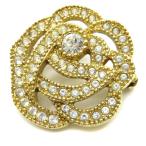 クリスチャンディオール Christian Dior フラワー ブローチ カメリア ラインストーン ゴールド ☆AA★