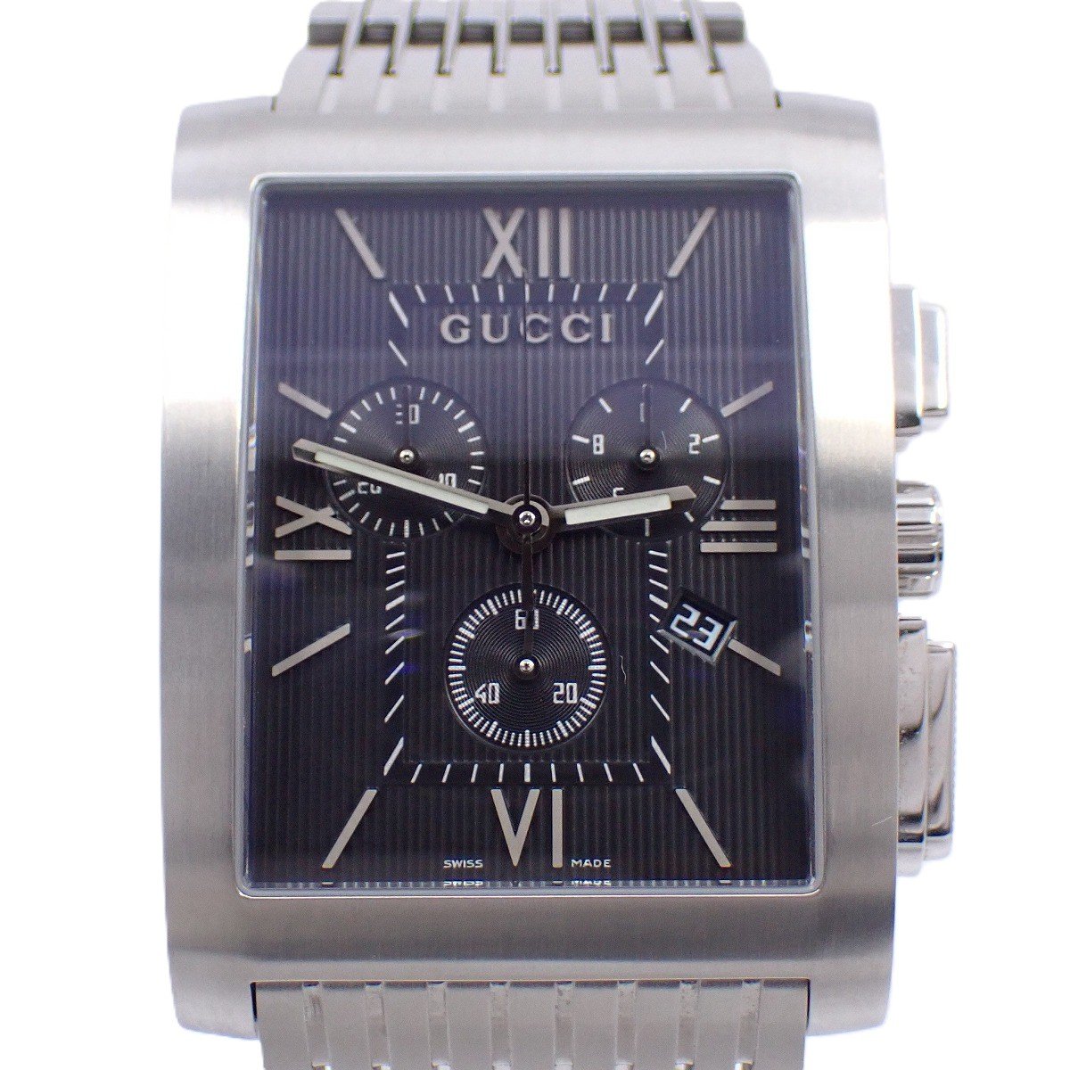 グッチ GUCCI 腕時計 Gメトロ 8600M レクタンギュラー ブラック文字盤 デイト クロノグラフ スモールセコンド 夜光針・インデックス SS クオーツアナログ 【中古】