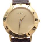 グッチ 3000.2.M ラウンド型 クォーツ メンズ 腕時計 ゴールドGP 純正革ベルト【いおき質店】