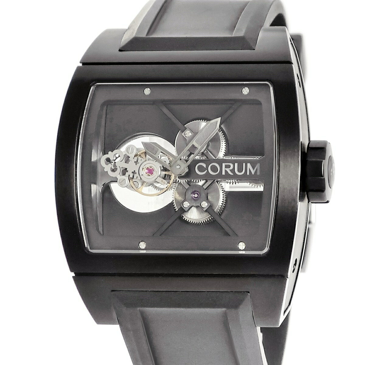 コルム CORUM ティーブリッジ トゥールビヨン B022/00936 OH済 スケルトン ブラックPVD加工 トノウ 限定 メンズ 腕時計手巻き ブラック 【中古】