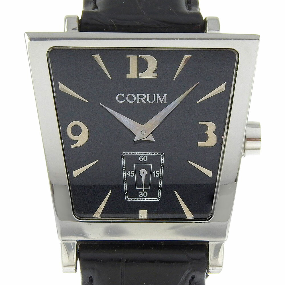 【スーパーセール10%OFF対象】コルム CORUM トラピーズ 腕時計 106.404.20 ステンレススチール×クロコダイル クオーツ アナログ表示 ブラック文字盤 Trapeze メンズ【中古】