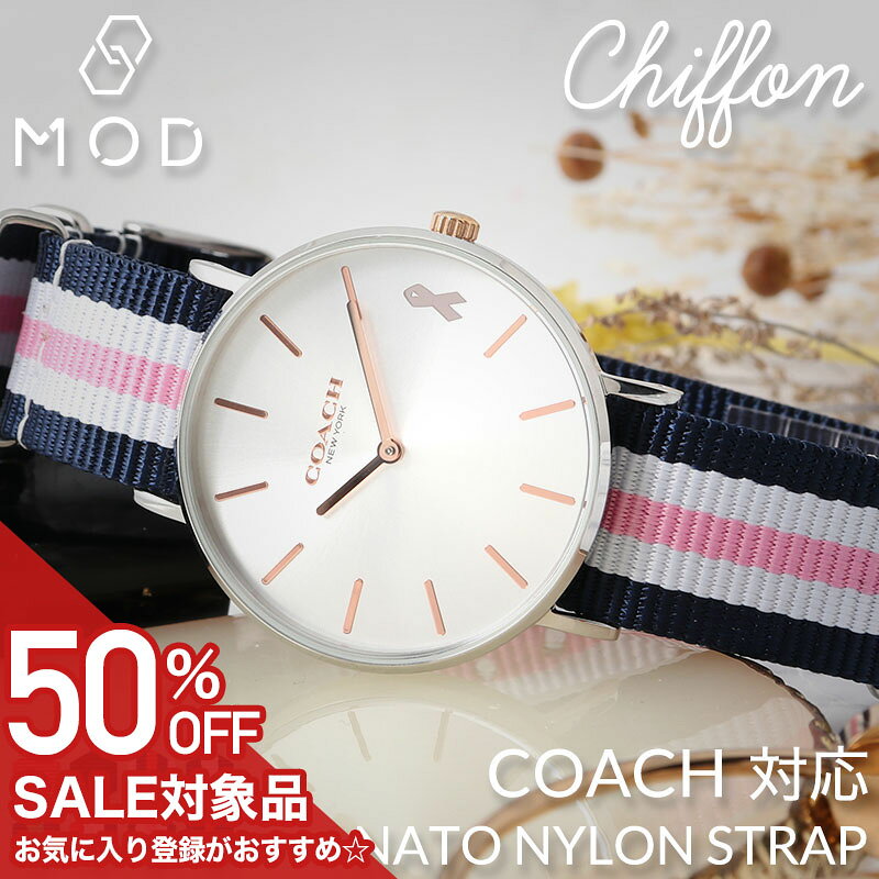 【50%OFF半額 825円引】【コーチ COACH 対応】MOD NYLON STRAP CHIFFON ナイロン ナトー ストラップ NATO 替えベルト 替えバンド 交換用 ナイロンベルト シルバー ローズゴールド おすすめ ブランド 高品質 リボン アウトドア カジュアル 18mm ネイビー レッド ホワイト 軽量