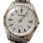 シチズン CITIZEN エクシード エコ ドライブ メンズ 腕時計 デイト H113-T009239 白 シルバー 電波 ソーラー クォーツ 【中古】 ht5058