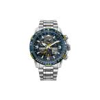 シチズン メンズ エコドライブ プロマスター エア クロノグラフ ウォッチ ステンレススチール シルバーブレスレット グリーンダイヤル 200メートル防水