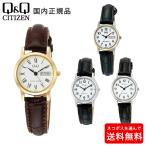 シチズンQ&Q レディース レザー ブレス クォーツ ソーラー 腕時計 QQ10