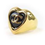 極美品★CHANEL シャネル L25A ココマーク ハート リング・指輪 ゴールド ブラック 日本サイズ11号相当 箱・ケース付き 仏製 レディース