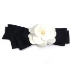シャネル CHANEL ブローチ カメリア リボン テキスタイル/サテン オフホワイト/ブラック