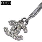 CHANEL シャネル 08V ココマーク ラインストーン ネックレス シルバー レディース