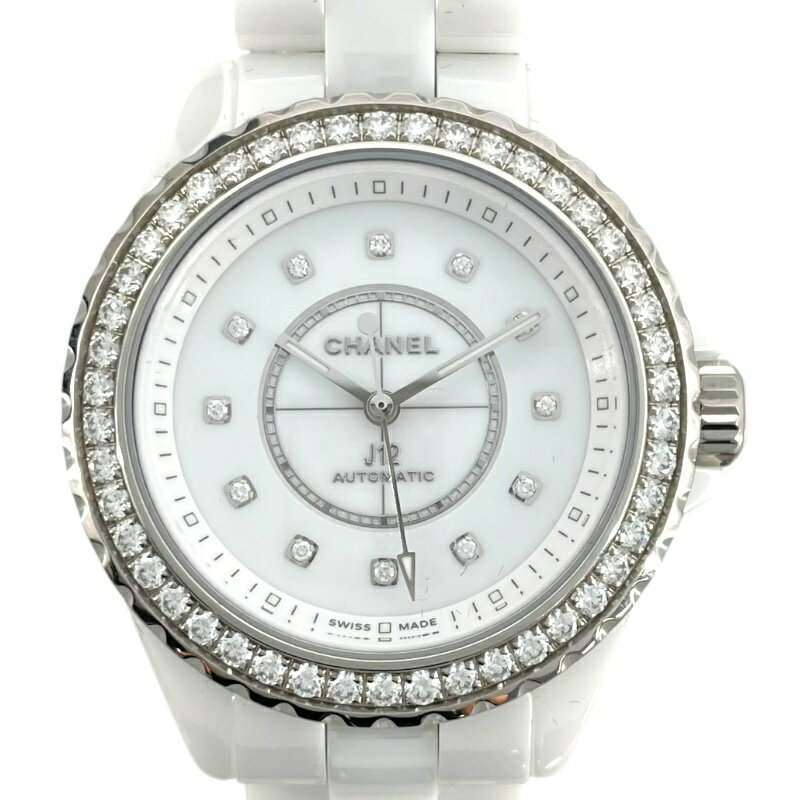 シャネル 時計 メンズ J12 自動巻 2重ダイヤベゼル ダイヤブレス ホワイト文字盤 セラミック CE CHANEL H1422 中古