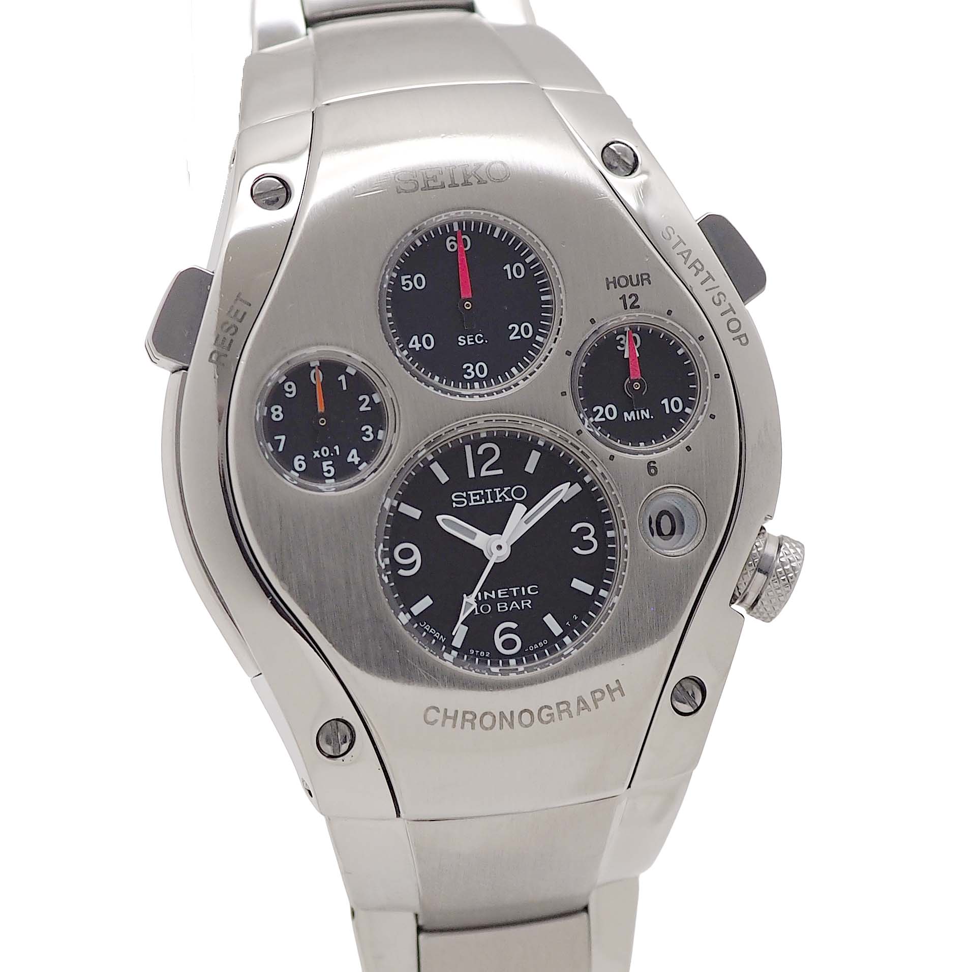 デッドストック級 腕時計 1000本限定 セイコー キネティック スポーチュラ 9T82-0A50 クロノ 裏スケ 黒文字盤 メンズ9662ABC0416510YSD