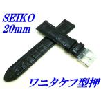セイコー バンド 腕時計 20mm RS03C20BK バネ棒付き 牛革ワニタケフ型押 切身 標準厚み 新品正規品 SEIKO 黒色 送料無料