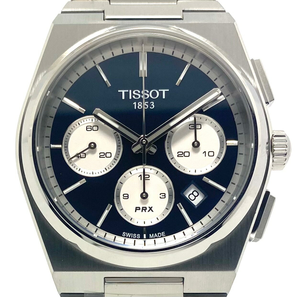 【中古】\ブラックフライデー!8%OFF!/中古 腕時計 メンズ ティソ TISSOT PRX オートマティック クロノグラフ T137427A 自動巻 ネイビー デイト表示 裏スケ 100m防水