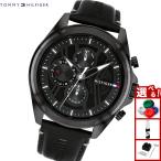 TOMMY HILFIGER トミーヒルフィガー 1710449 メンズ 腕時計 マルチファンクション アナログ クォーツ 革バンド レザーバンド ブラック ギフト プレゼント