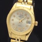 ジュリオバレンチノ QZ ゴールド文字盤 石付 デイト ラウンド レディース腕時計 KYM
