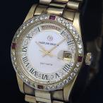良品 ロマーニ バレンチノ QZ 石付 ラウンド ゴールド文字盤 メンズ腕時計 XECT 2000000YSD
