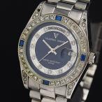 稼働 バレンチノドマーニ VD-2007 ダイヤベゼル QZ ブルー文字盤 メンズ腕時計 2000000 NSK SMZ