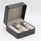 新品同様 稼働 箱付 マリオバレンチノ ペアウォッチ MV-3600 QZ シルバー文字盤 メンズ/レディース腕時計 2000000 4NBG ABC21211 KMT