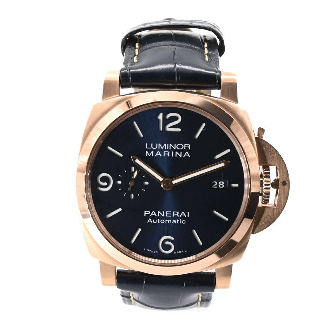 【美品】PANERAI パネライ ルミノール マリーナ ゴールドテック 自動巻き 腕時計 ウォッチ 時計 ブルー文字盤 PAM01112