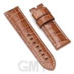 GMT オリジナルアクセサリー 革バンド パネライ ルミノール用 ストラップ【尾錠用】 クロコダイル サイズ24mm-22mm ブラウン 生成りステッチ