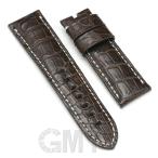 GMT オリジナルアクセサリー 革バンド パネライ ルミノール用 ストラップ クロコダイル サイズ24mm-22mm チョコレート 生成りステッチ