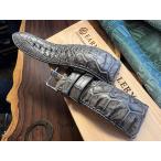 24mm、極上一点もの!墨染クロコ脚元亀甲柄(JIGUZAGU)!