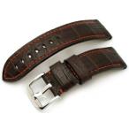 24mm TAIKONAUT 時計ベルト クロコダイル ダークチョコレートブラウン パネライ44mm