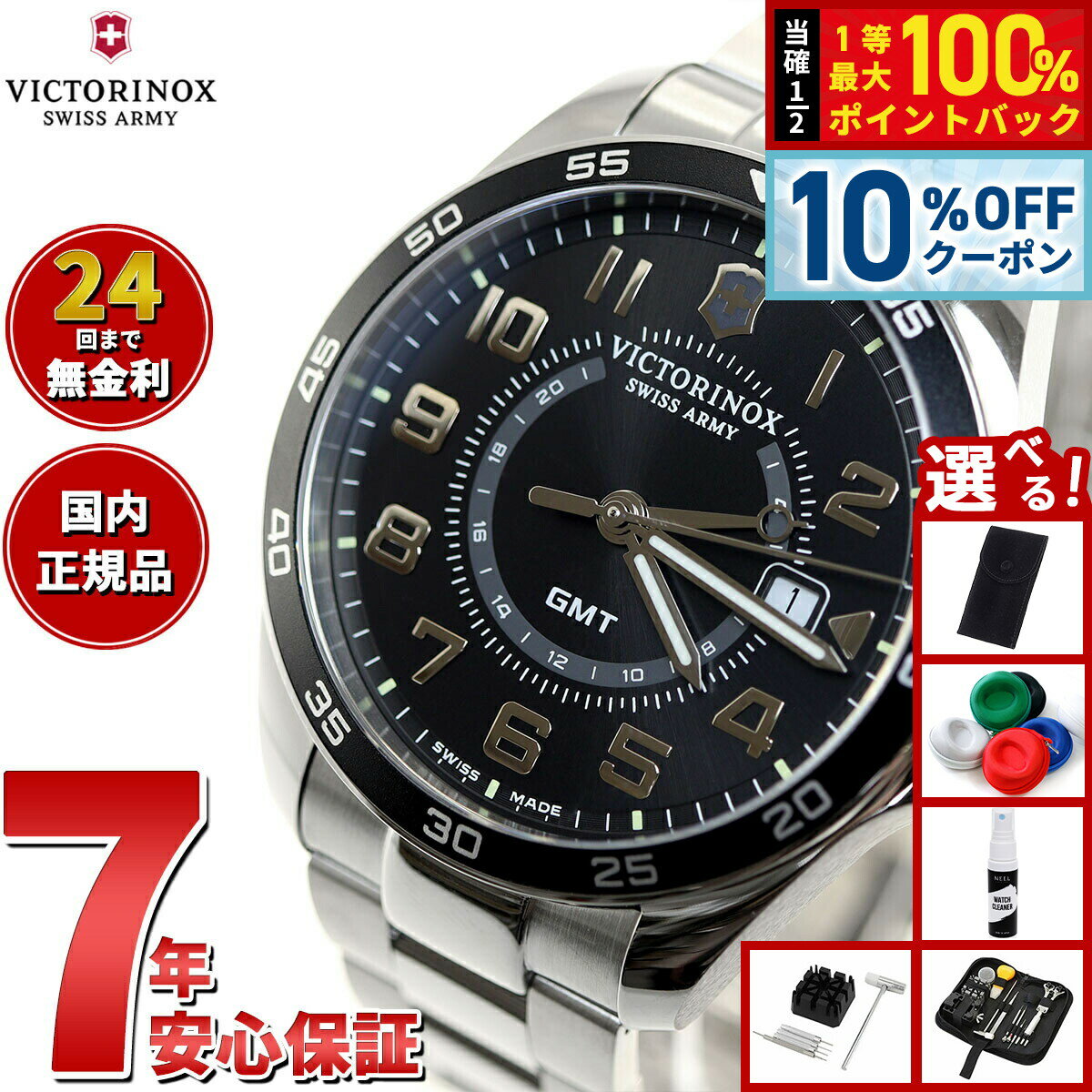 【18日当店限定Wイベント!10%OFFクーポン&抽選で10000ptポイントバック】【選べるノベルティー付き】ビクトリノックス 時計 メンズ VICTORINOX 腕時計 241931 フィールドフォース クラシック FIELD FORCE Classic GMT シルバー