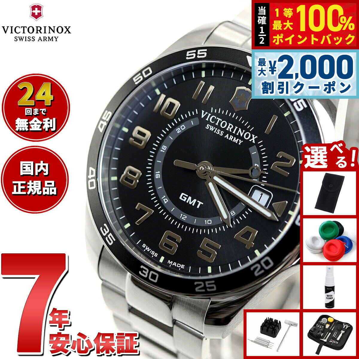 【3/5は当店限定Wイベント!2000円OFFクーポン&抽選で最大10000ptバック】【選べるノベルティー付き】ビクトリノックス 時計 メンズ VICTORINOX 腕時計 241931 フィールドフォース クラシック FIELD FORCE Classic GMT シルバー