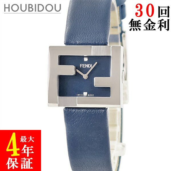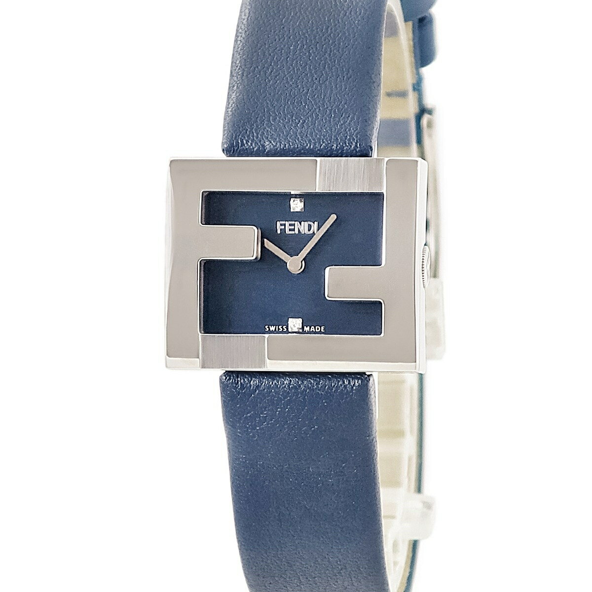 フェンディ FENDI マニア レクタンギュラー F100102801 未使用 ズッカフェイス 純正ダイヤ ブルー レディース 腕時計クオーツ ネイビー 【中古】