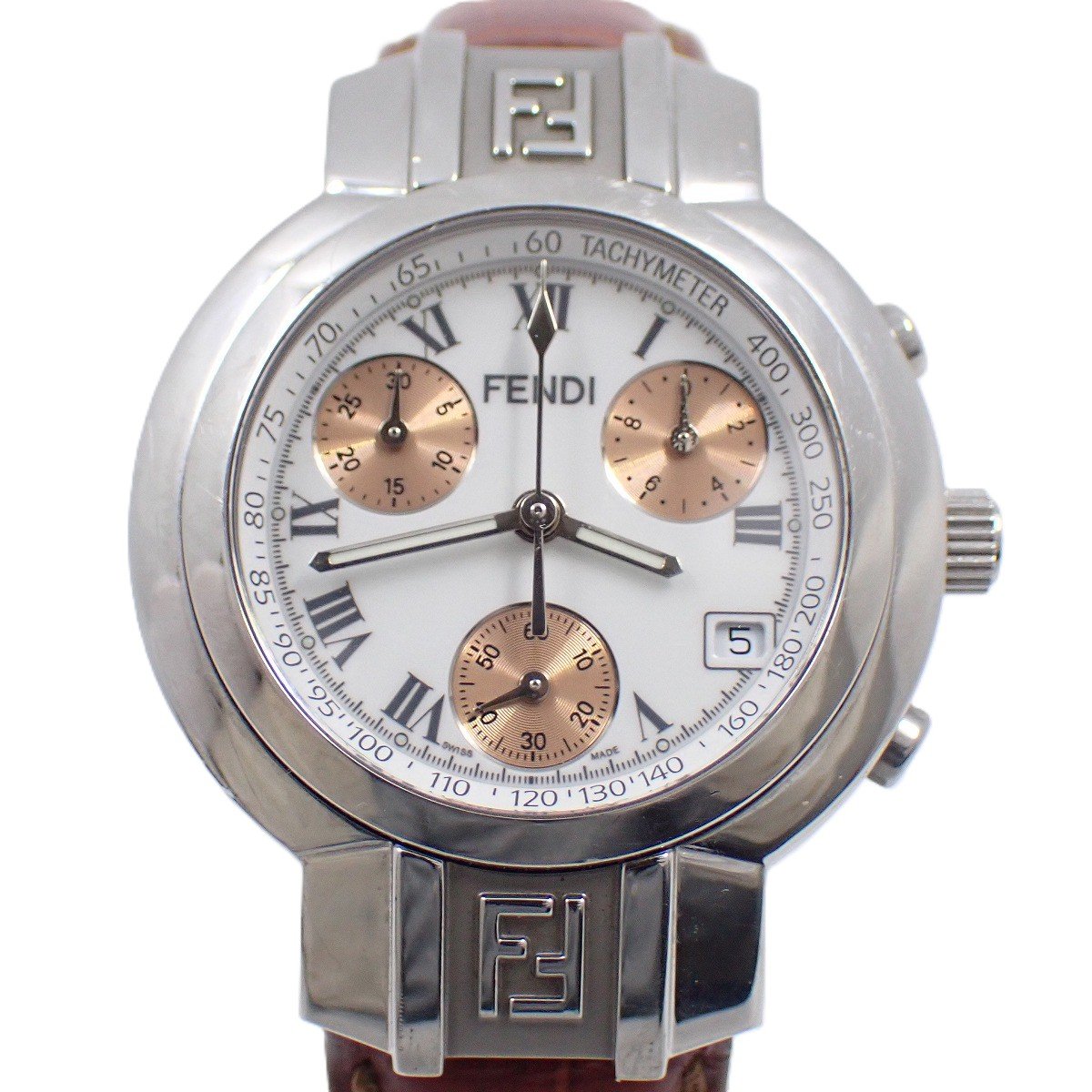 【中古】フェンディ 4500L ズッカ クロノグラフ クォーツ レディース 腕時計 白文字盤 純正革ベルト【いおき質店】