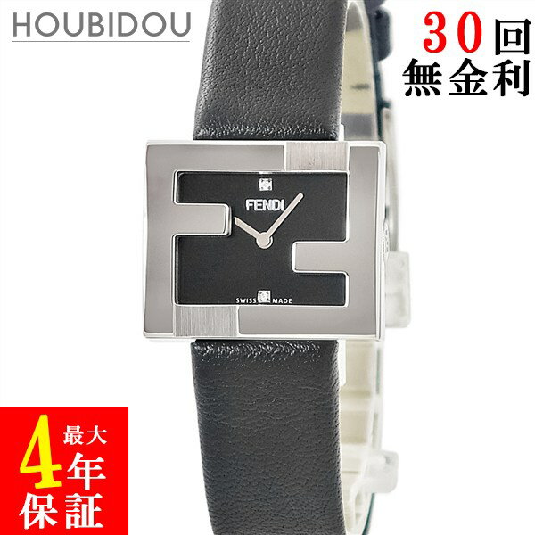 フェンディ FENDI マニア レクタンギュラー F100101001 未使用 ズッカフェイス 純正ダイヤ シルバー 黒 レディース 腕時計クオーツ ブラック 【中古】