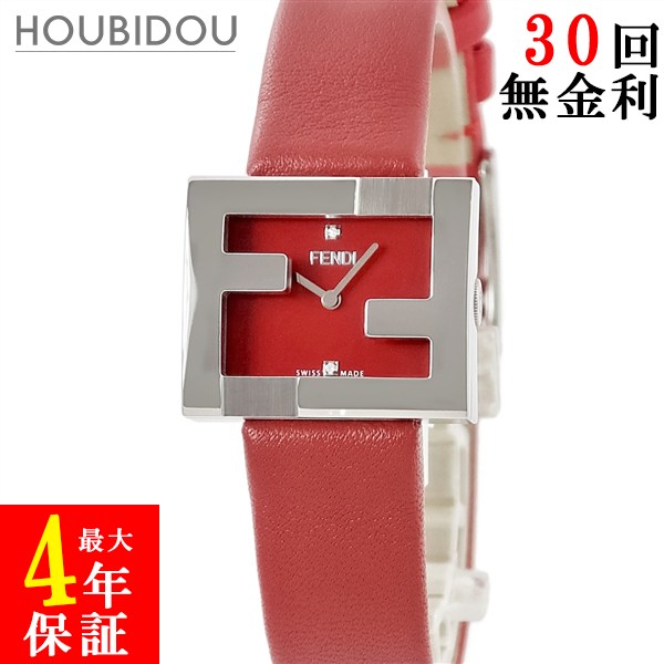 フェンディ マニア レクタンギュラー F100101901 未使用 ズッカフェイス 純正ダイヤ シルバー 赤 クオーツ