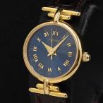 稼働 良品 フォッシル PC-9577 QZ ブルー文字盤 カットガラス ラウンド レザーベルト レディース腕時計 DOI 2000000 NSK