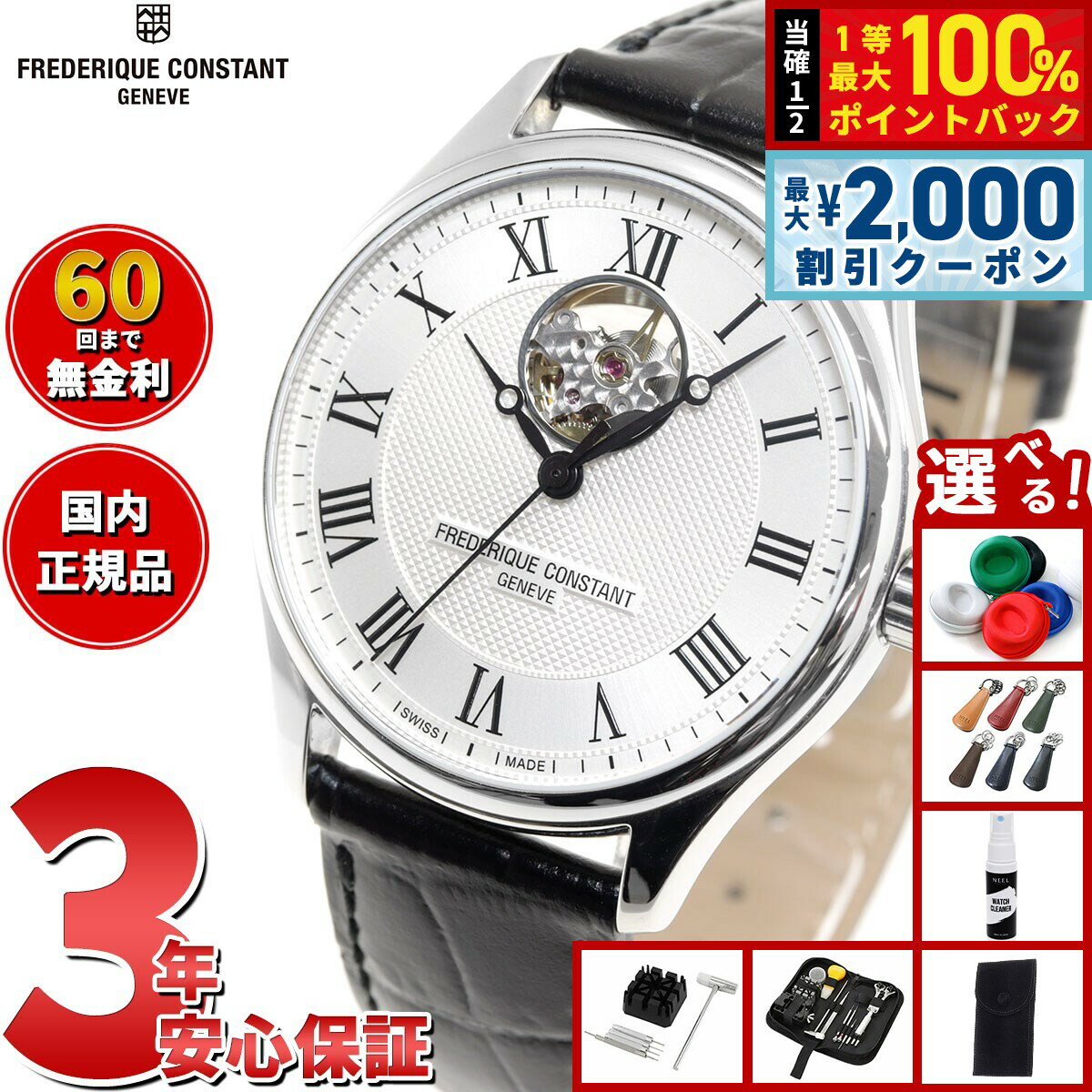 【15日限定!2000円OFFクーポン&抽選で最大10000ptバック】【選べるノベルティー付き】【60回分割手数料無料!】フレデリック コンスタント FREDERIQUE CONSTANT FC-310WN4C6 クラシック カレ ハートビート 自動巻 日本限定 腕時計 正規品 フレデリックコンスタント