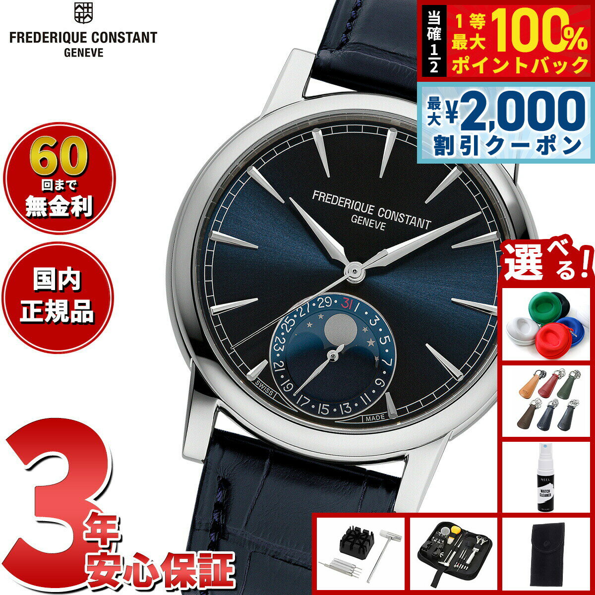 【15日限定!2000円OFFクーポン&抽選で最大10000ptバック】【選べるノベルティー付き】【60回分割手数料無料!】フレデリック コンスタント FREDERIQUE CONSTANT マニュファクチュール ムーンフェイズ FC-716N3H6 腕時計 フレデリックコンスタント