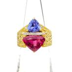 トルマリン デザインリング YG イエローゴールド 指輪 タンザナイト メレダイヤ リング 8.5号 K18 トルマリン タンザナイト レディース 中古