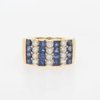 サファイア デザインリング YG イエローゴールド 指輪 メレダイヤ リング 12号 K18 サファイア ダイヤモンド レディース 中古