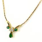ジュネ Jeunet グリーンガーネット デザインネックレス YG イエローゴールド ペンダント ネックレス 750 グリーンガーネット ダイヤモンド レディース 中古