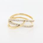 ダイヤモンド デザインリング YG イエローゴールド 指輪 メレダイヤ リング 9号 K18 ダイヤモンド レディース 中古