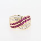 ルビー デザインリング YG イエローゴールド 指輪 メレダイヤ リング 11.5号 K18 ルビー ダイヤモンド レディース 中古