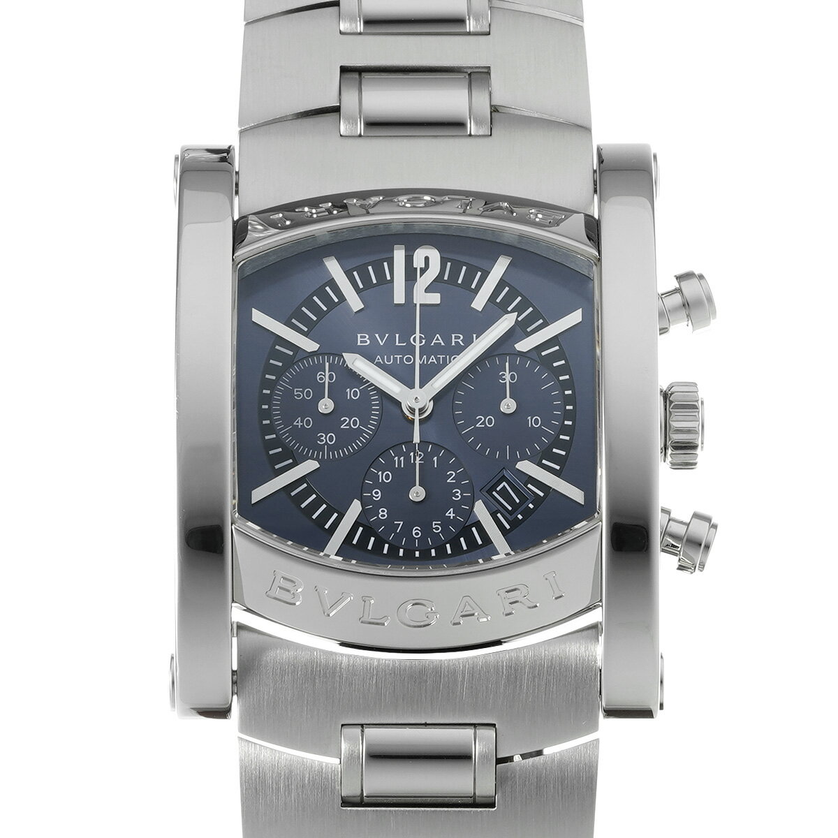 ブルガリ BVLGARI アショーマ クロノグラフ AA48SCH 青文字盤 ステンレス メンズ 【中古】 時計